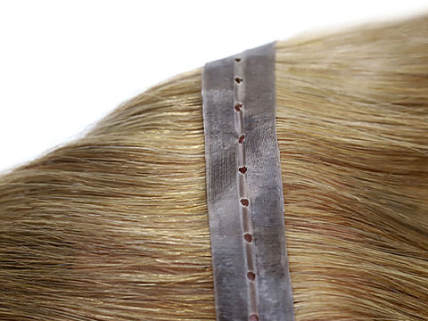 involves wefts of hair (a long, continuous strand of hair sewn together at the